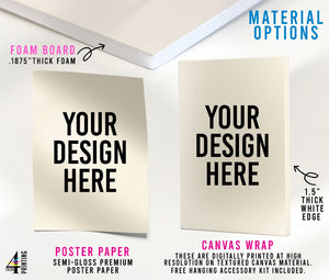 Once you approve your proof, print orders will ship out in 1-3 business days after you approve your proof. Poster paper is shipped rolled in a tube. Foam Boards and Canvas Wraps are shipped flat in a heavy duty box.